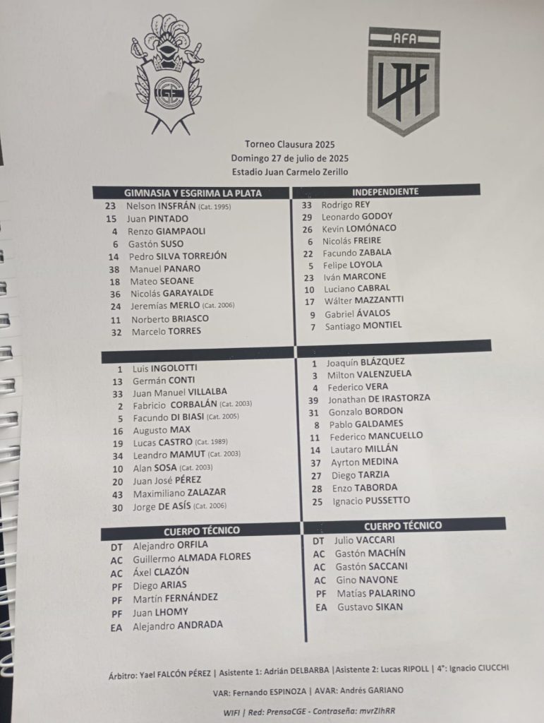Independiente dominó la posesión —superior al 70 por ciento en varios pasajes— e intentó lastimar desde su presión alta y circulación interna, pero Gimnasia resistió con disciplina, recuperaciones clave y se sostuvo en el arquero Insfrán, ya una muralla cuando fue exigido. El equipo no lució vistoso, pero sí eficaz.