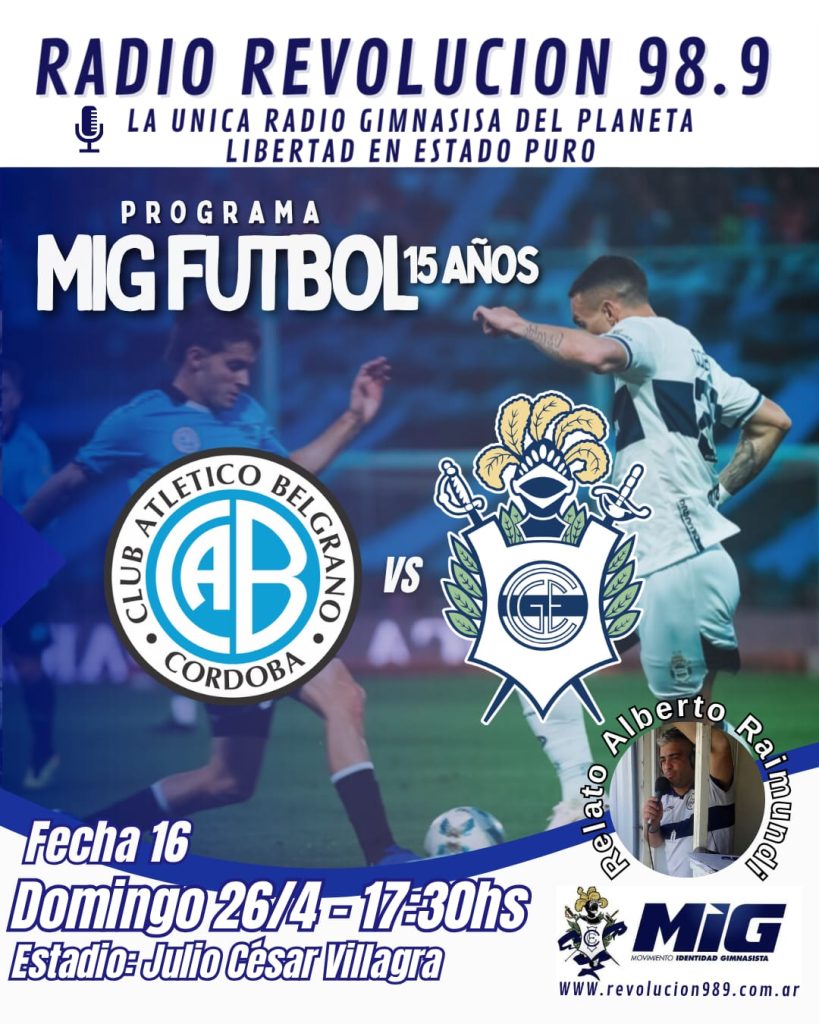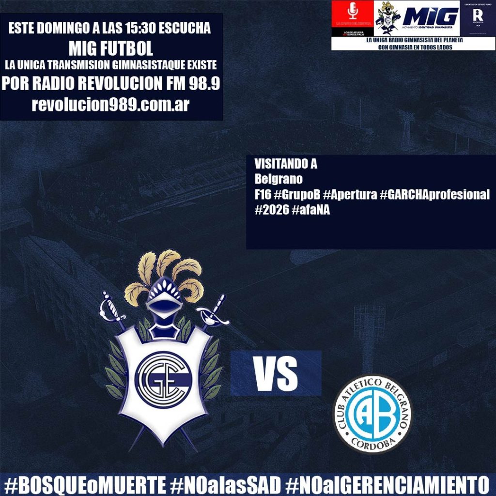 Gimnasia visitará este domingo desde las 17.30 a Belgrano por la fecha 16 del Torneo Apertura 2026, en el estadio Julio César Villagra. El partido será dirigido por Nazareno Arasa, con Facundo Tello en el VAR, y transmite MIG FUTBOL desde las 15.30 por Radio Revolución 98.9.